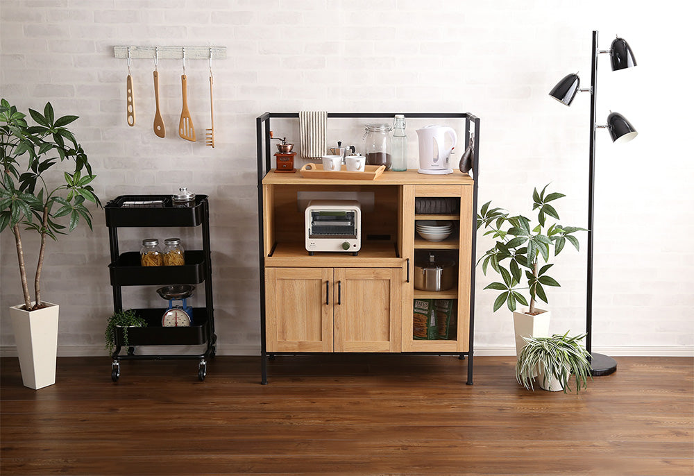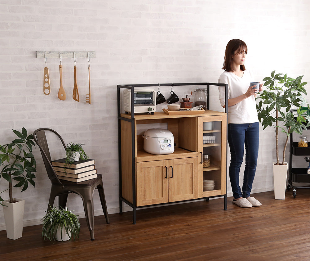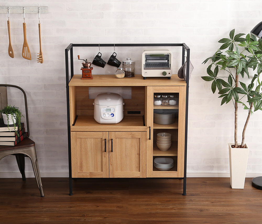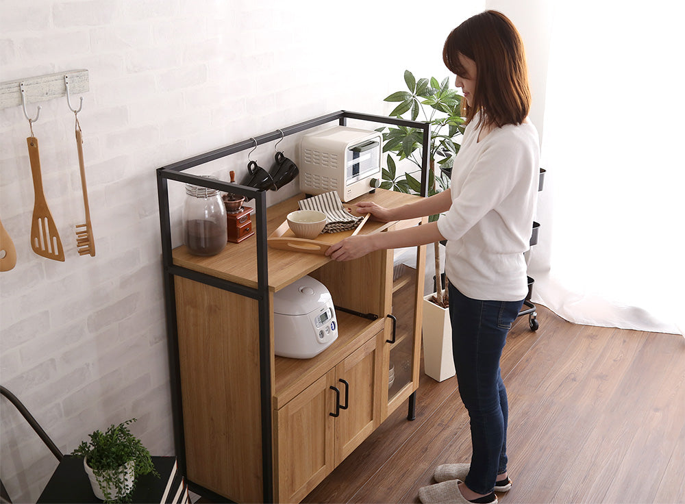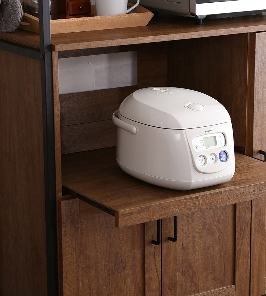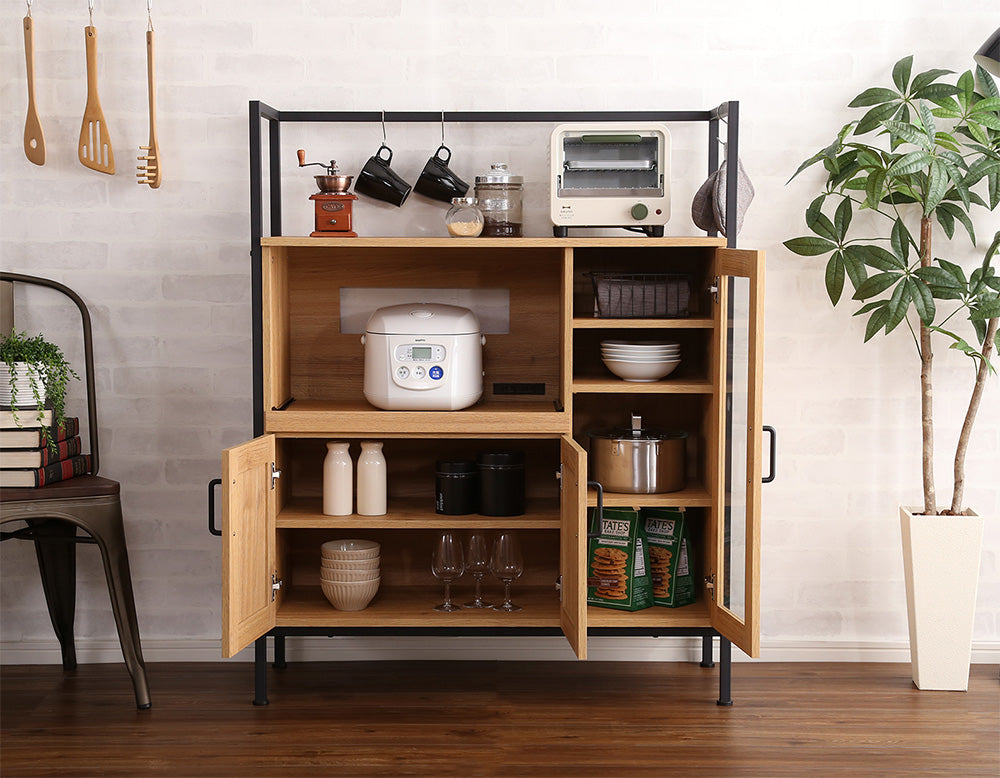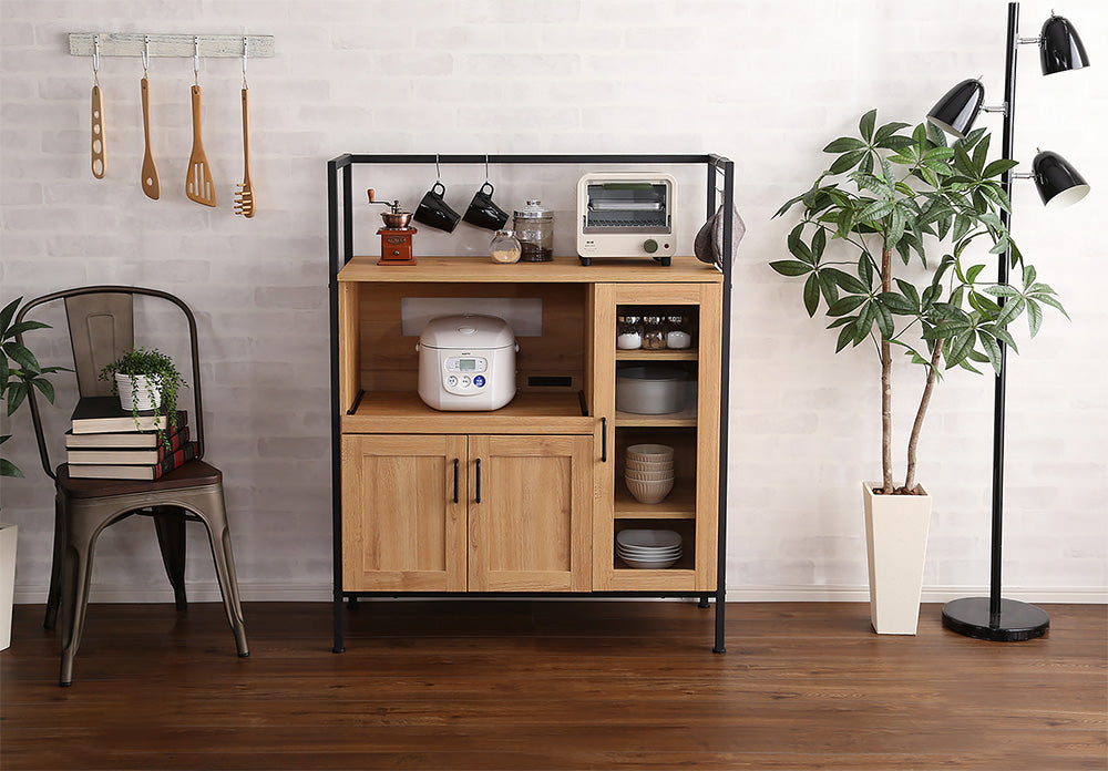 食器はもちろん、炊飯器やレンジがコンパクトに収まるので、省スペースにピッタリ。