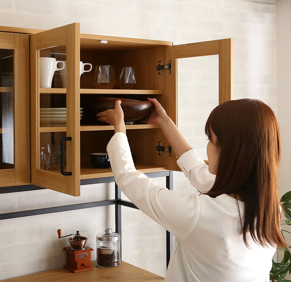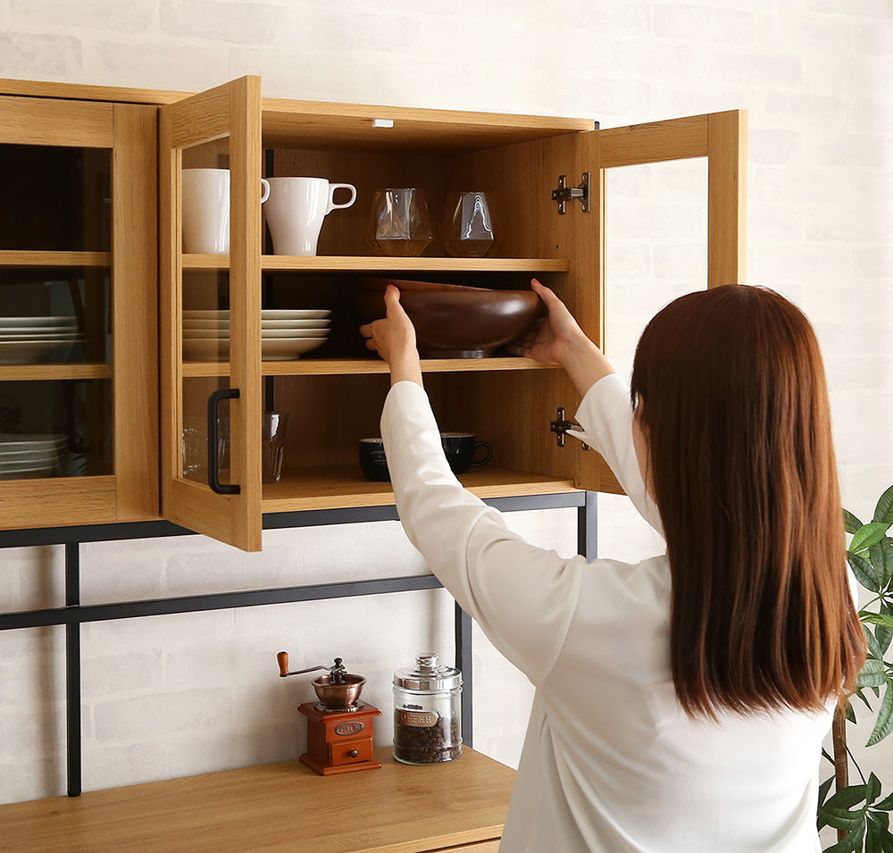 上段はガラス扉の収納なのでオシャレに魅せる収納ができます。