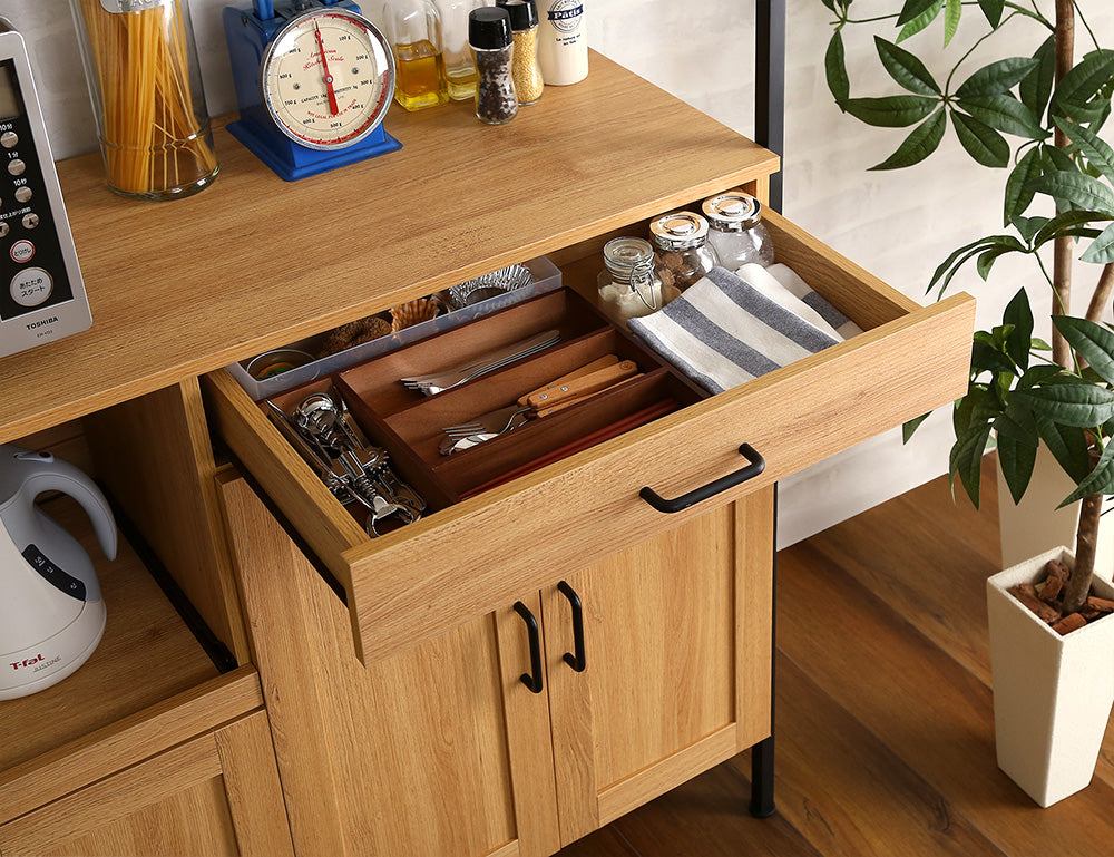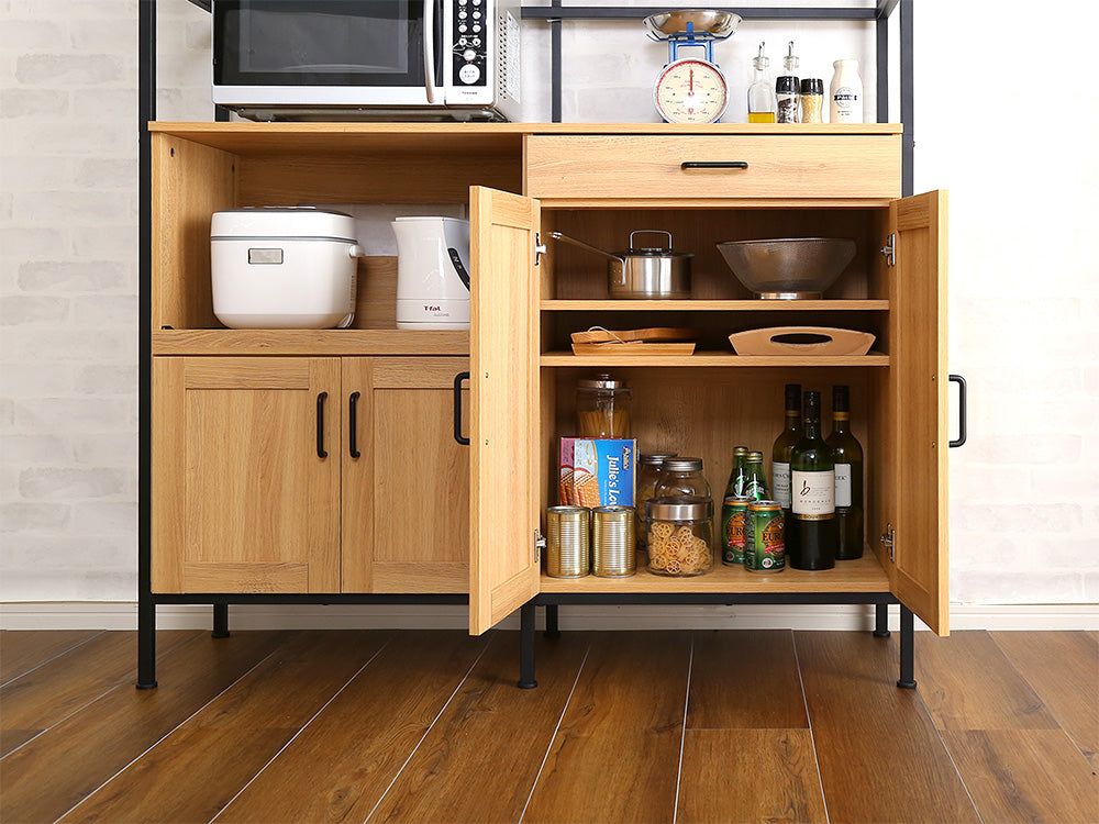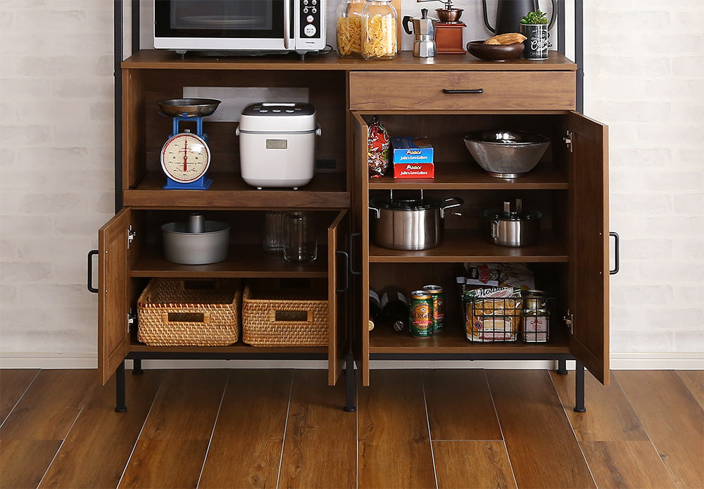 キッチン家電や食器など丸々収納できる大容量でキッチン周りもスッキリできます。