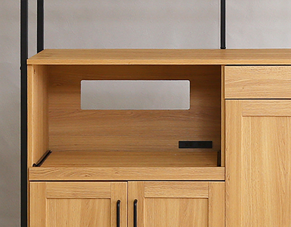 出し入れしやすいスライドトレーには2口コンセントがついており炊飯器など置くのにピッタリです。