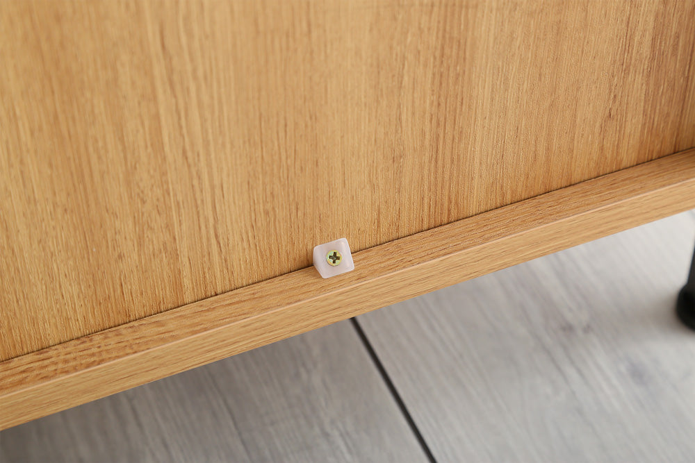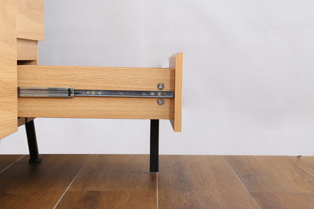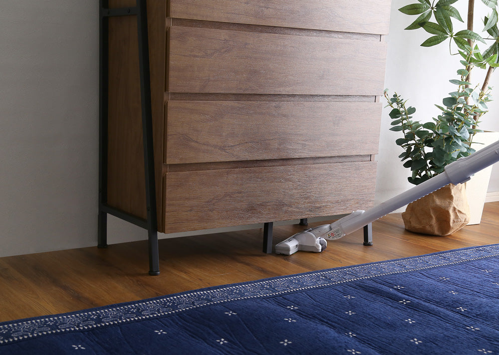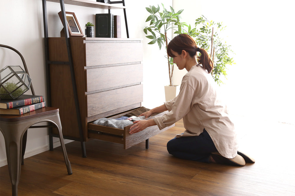 事故が起きないように、転倒防止ワイヤーに加え、引き出し下に転倒防止脚を取り付けることで、家族の安全を守ります。