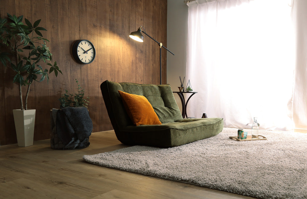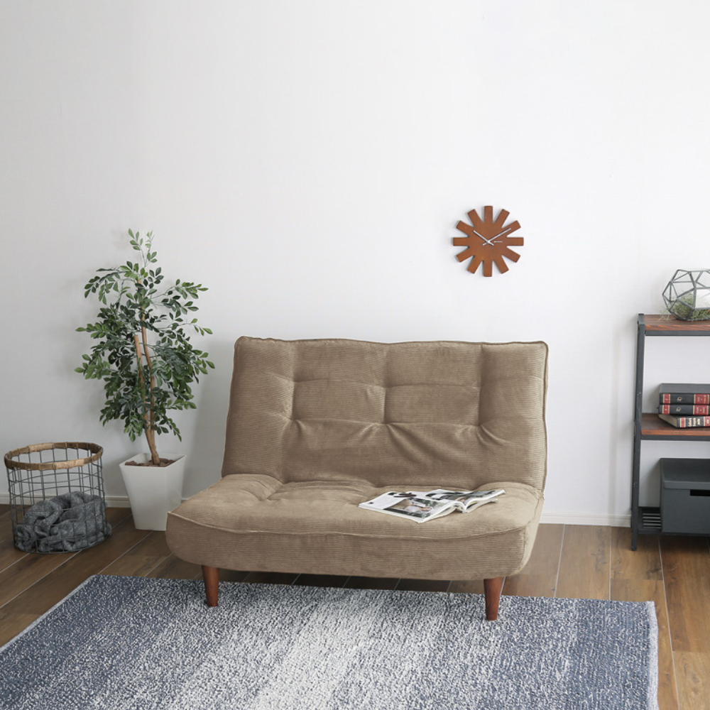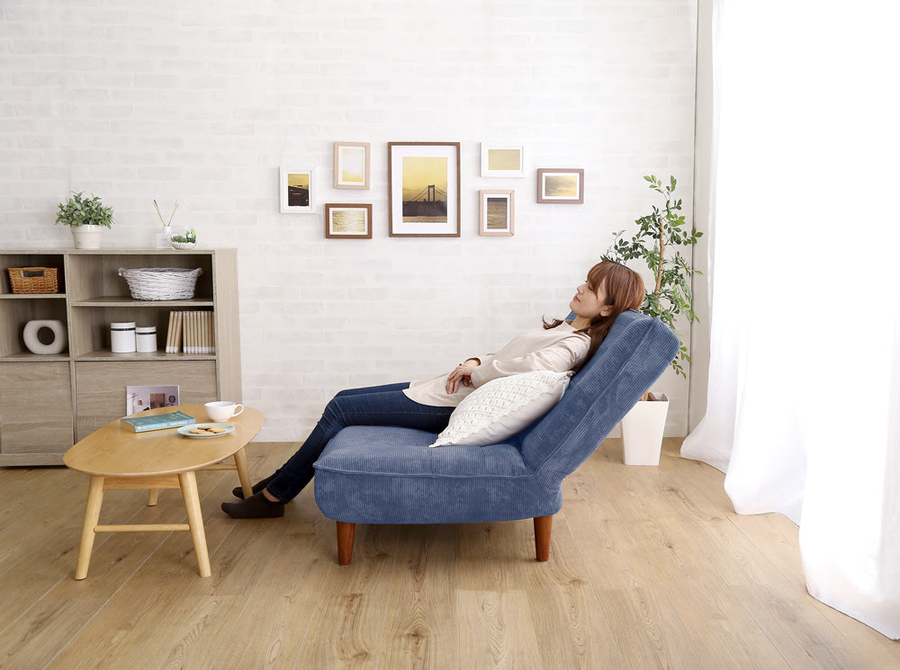 日本製ギア搭載で背もたれの角度を3段階に軽く調節できるソファです。