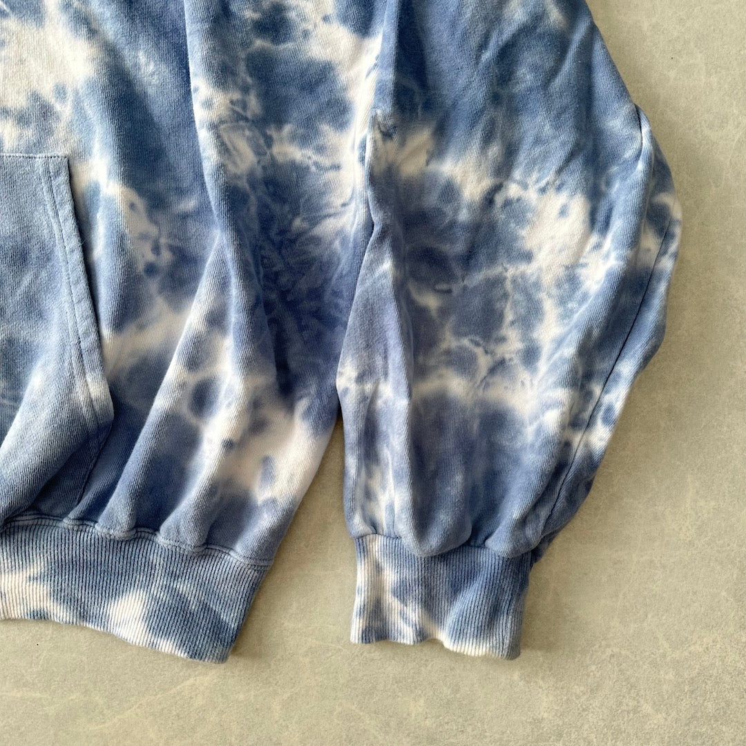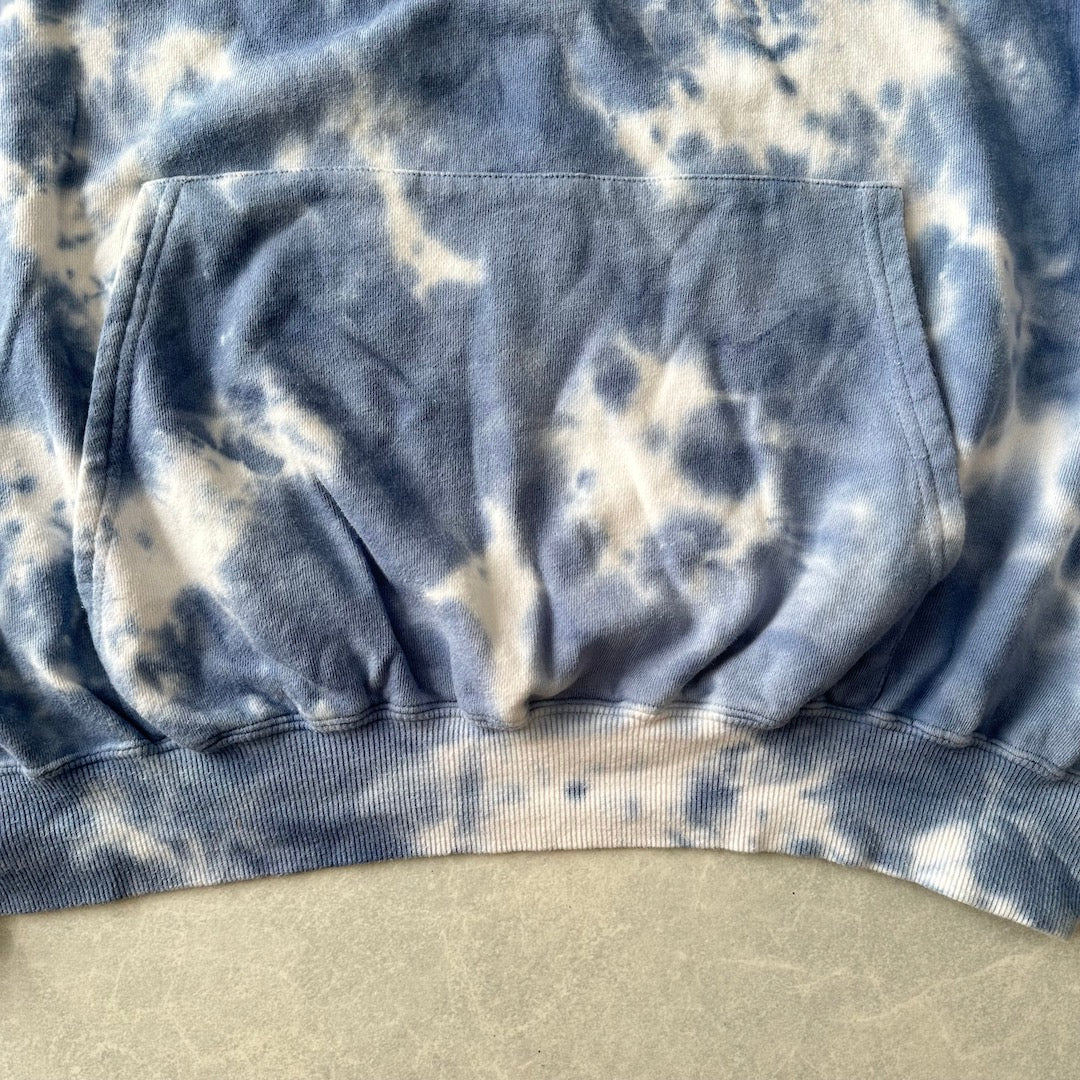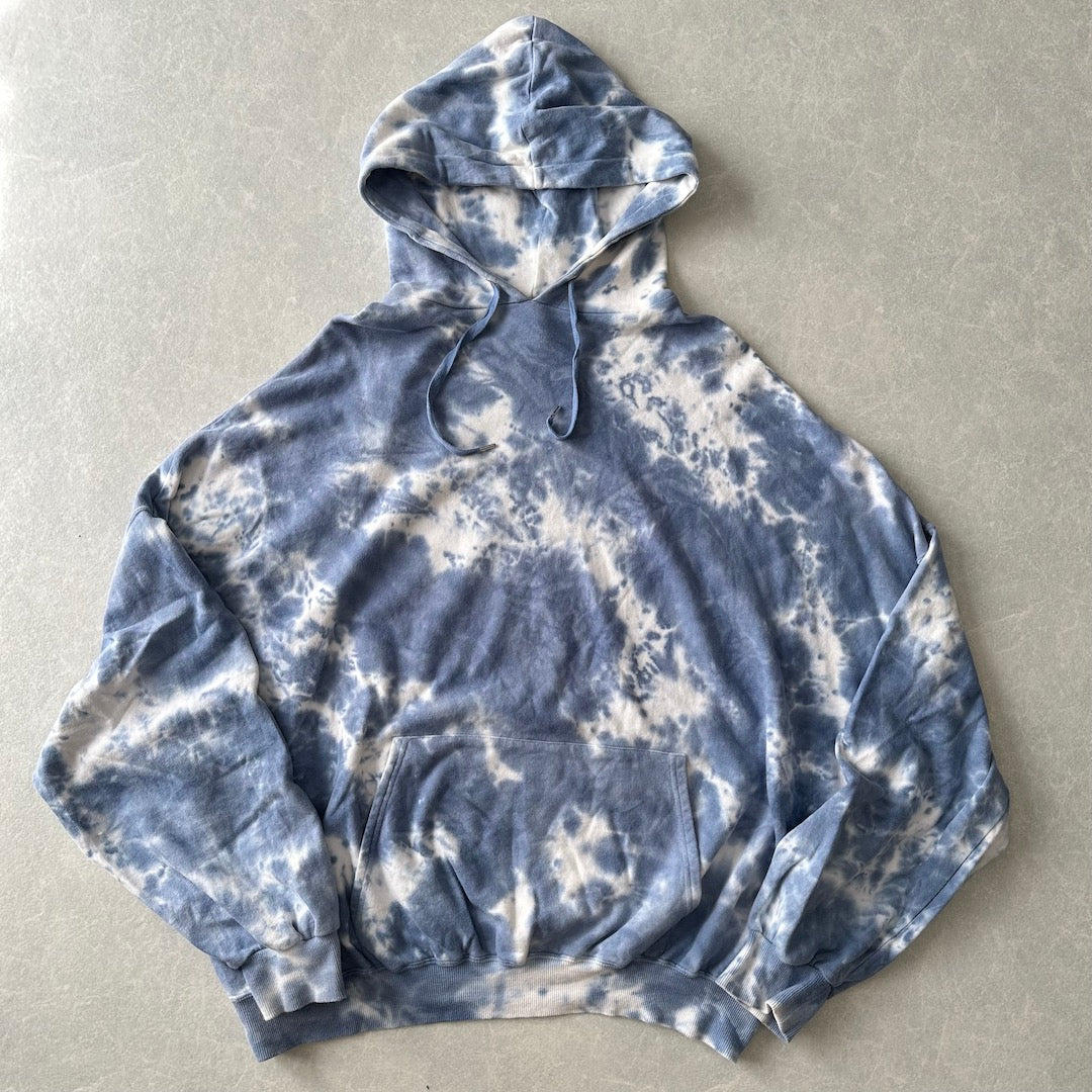 ムラ染め バックプリント プルオーバー パーカー 総柄 M 古着 メンズ 古着男子 アート 刺繍 ビッグシルエット ゆったり オーバーサイズ
