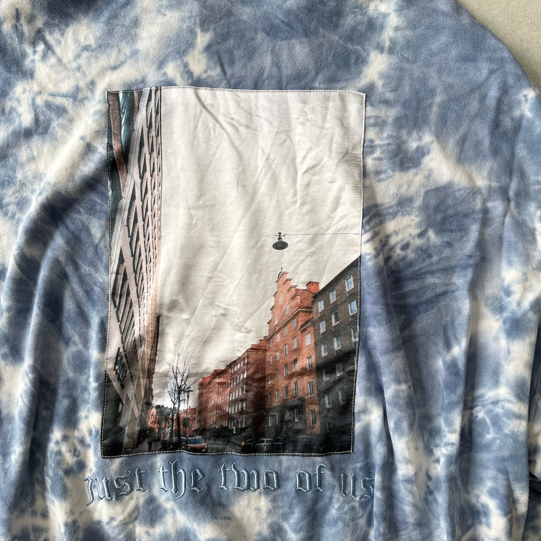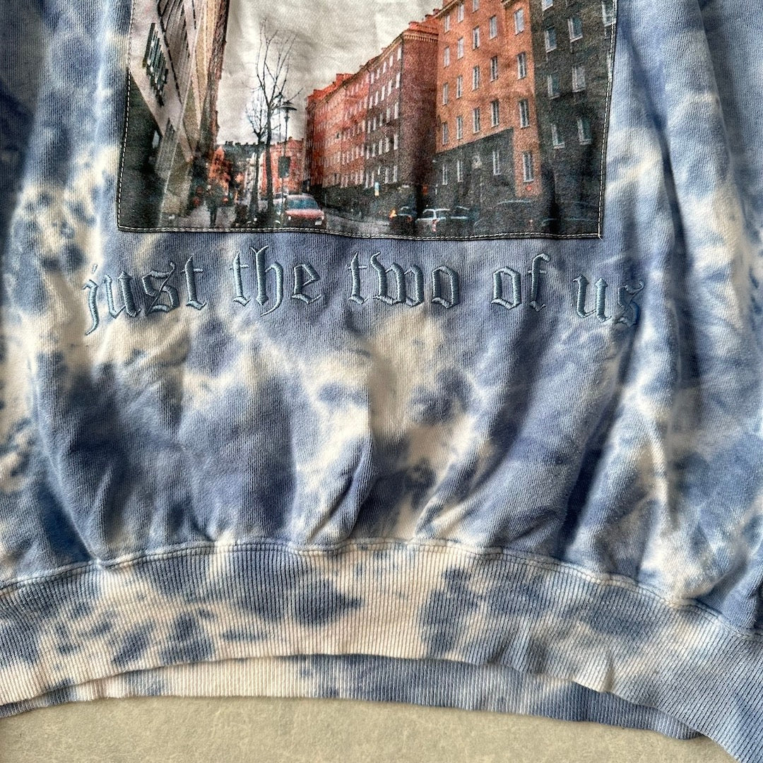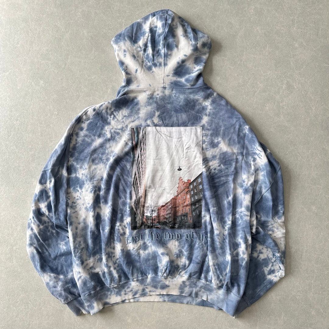 ムラ染め バックプリント プルオーバー パーカー 総柄 M 古着 メンズ 古着男子 アート 刺繍 ビッグシルエット ゆったり オーバーサイズ