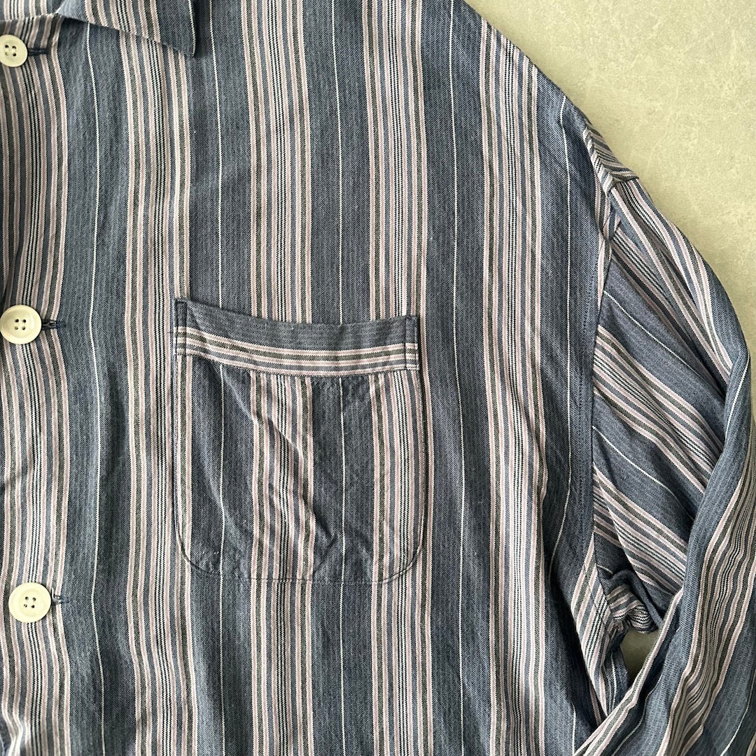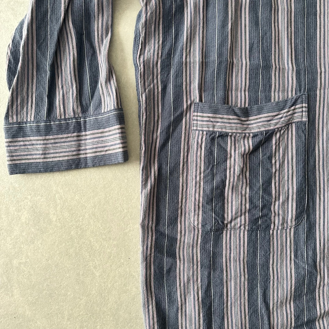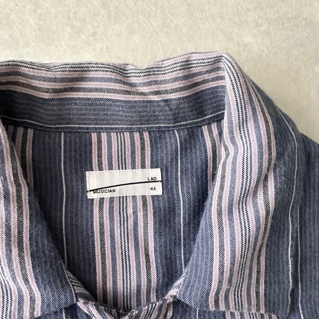 【LAD MUSICIAN】マルチストライプステンカラーシャツコート ストライプ柄 44 古着 メンズ