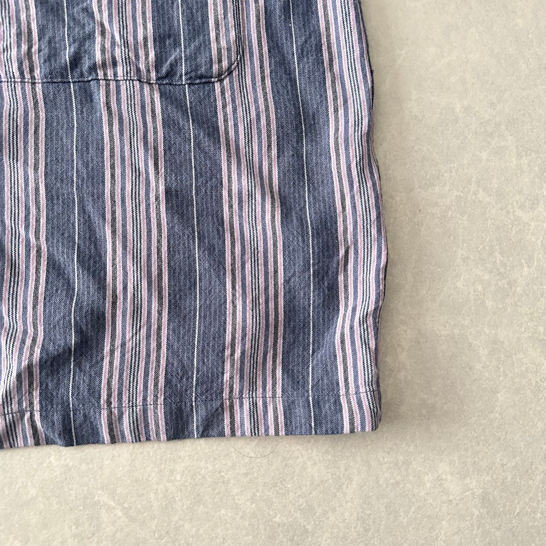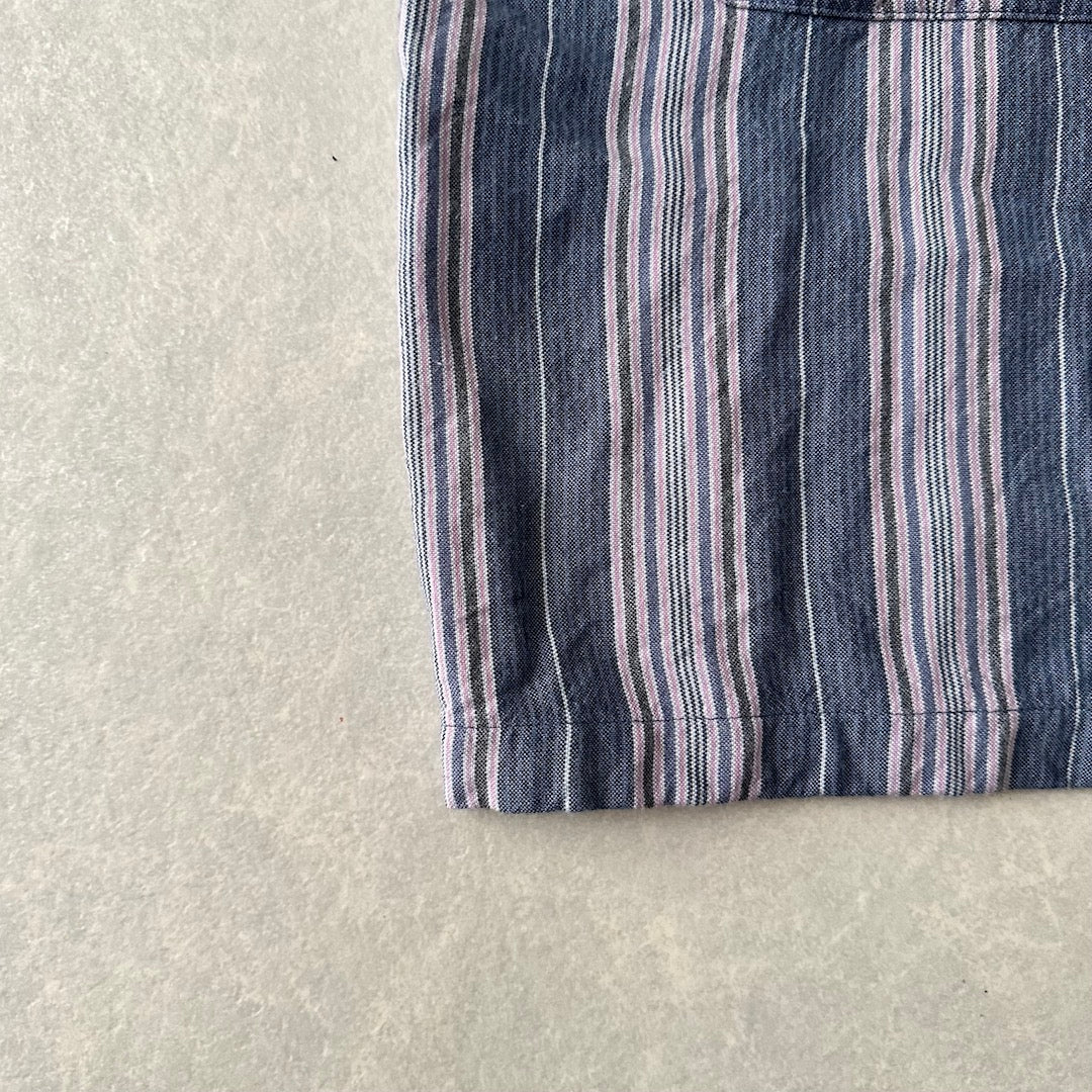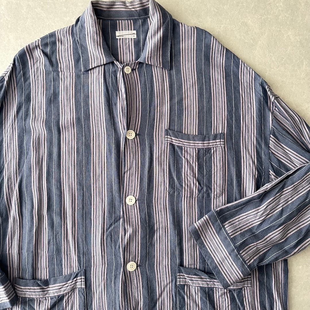 【LAD MUSICIAN】マルチストライプステンカラーシャツコート ストライプ柄 44 古着 メンズ