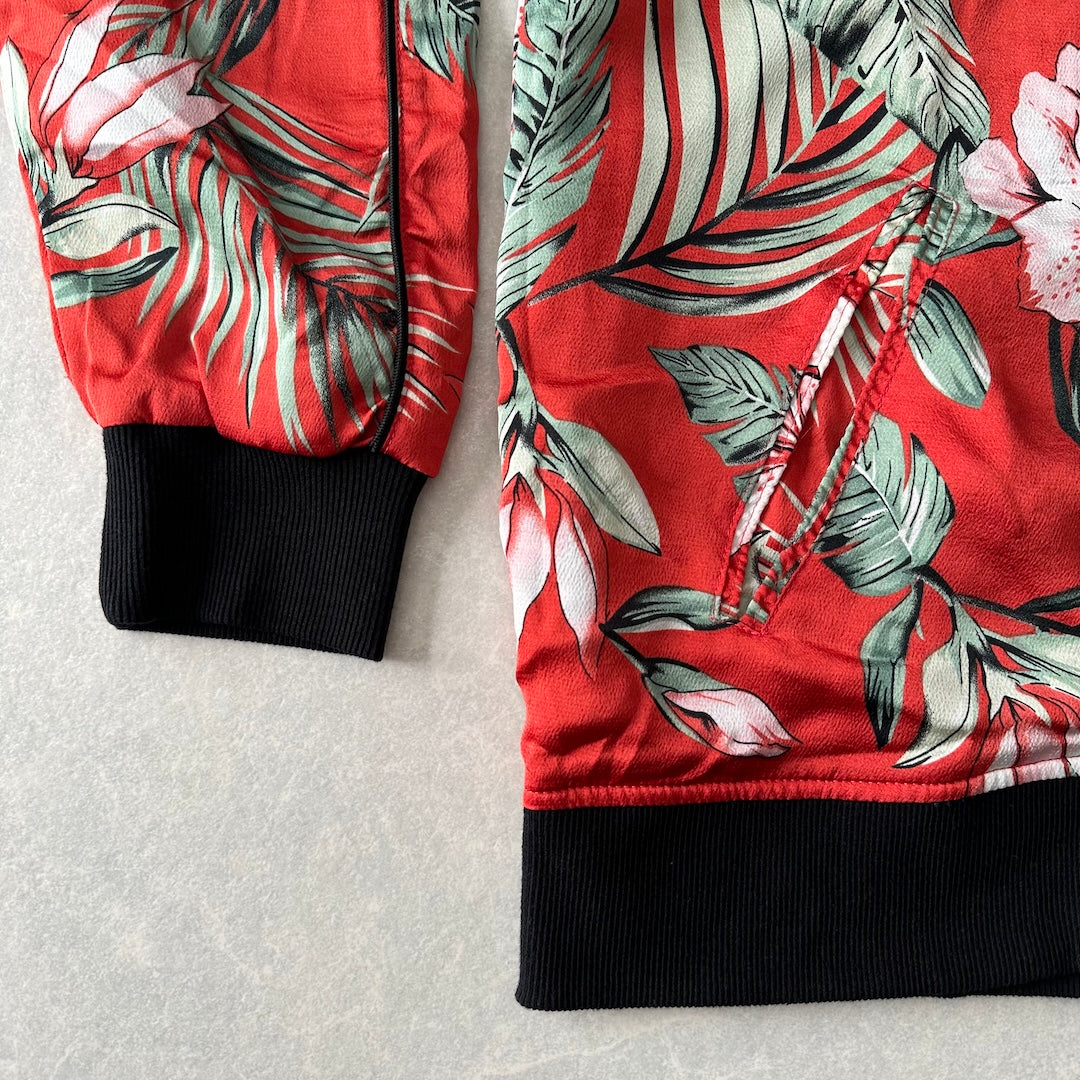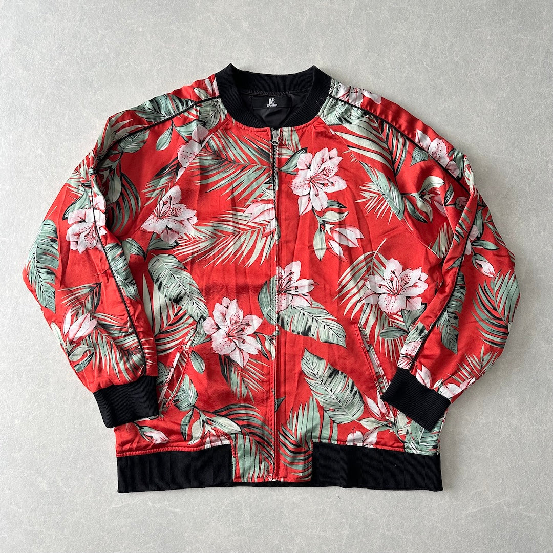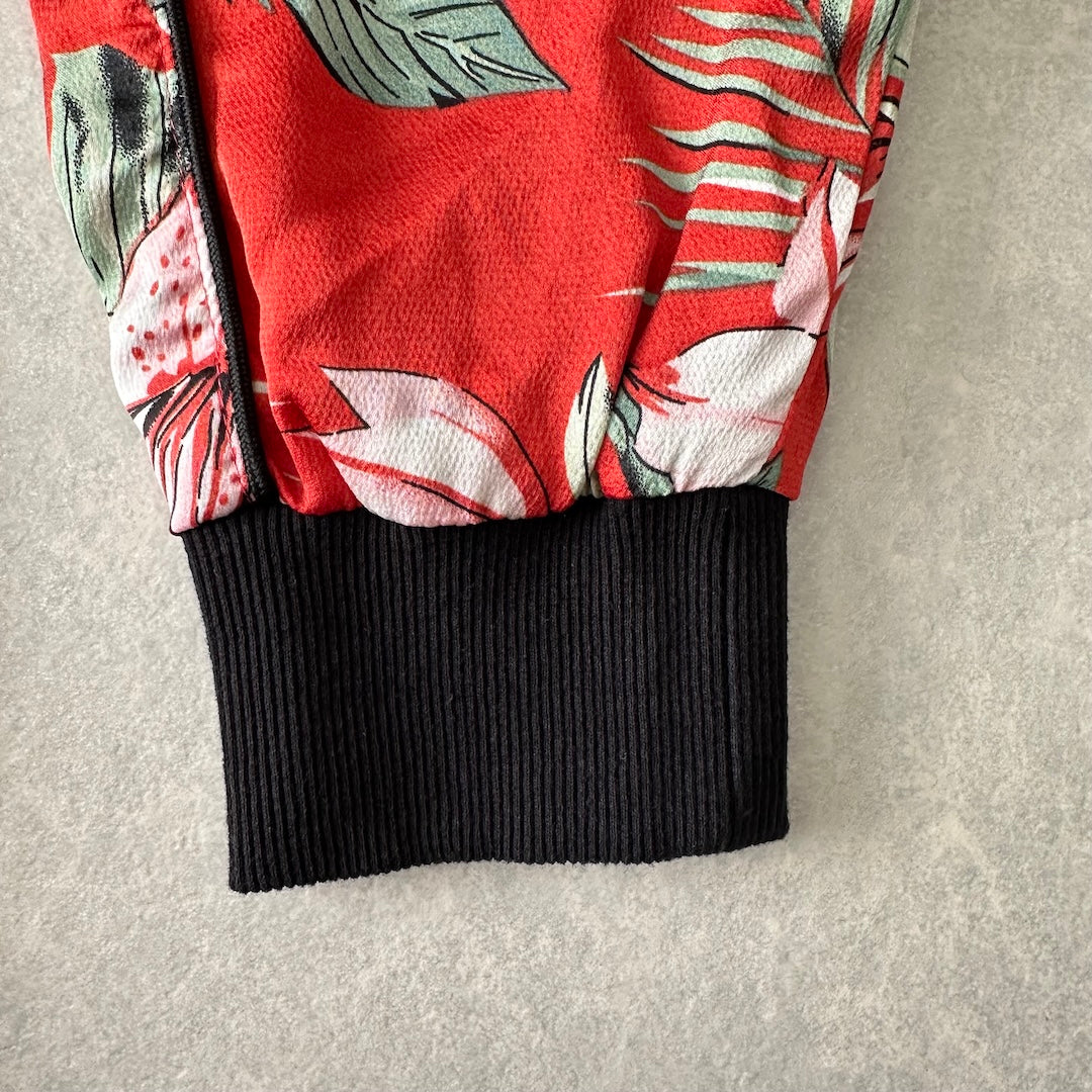 【CAMBIO】ボタニカル柄 リーフ 花柄 ジップ ブルゾン 総柄 L 古着 メンズ 古着男子 ブランド古着 フラワー オレンジ モード アート