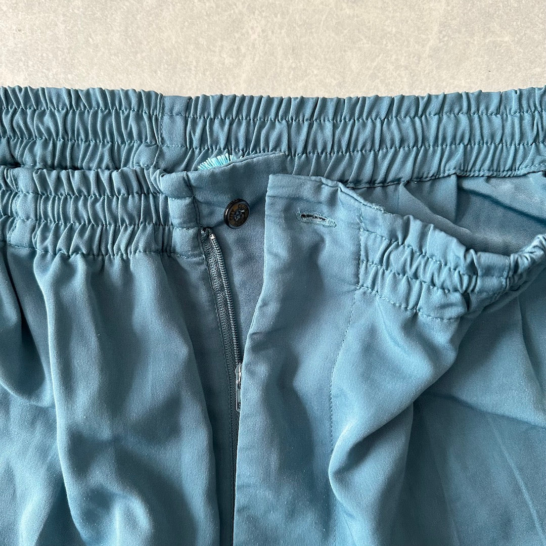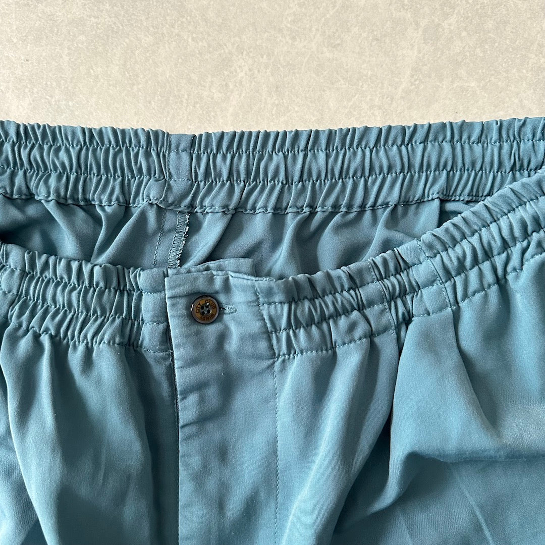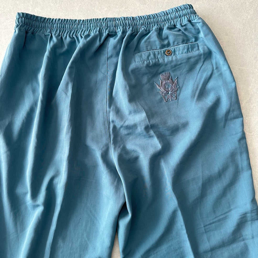刺繍入り リラックス イージーパンツ ブルー 古着 メンズ 古着男子 ウエストゴム ポケット