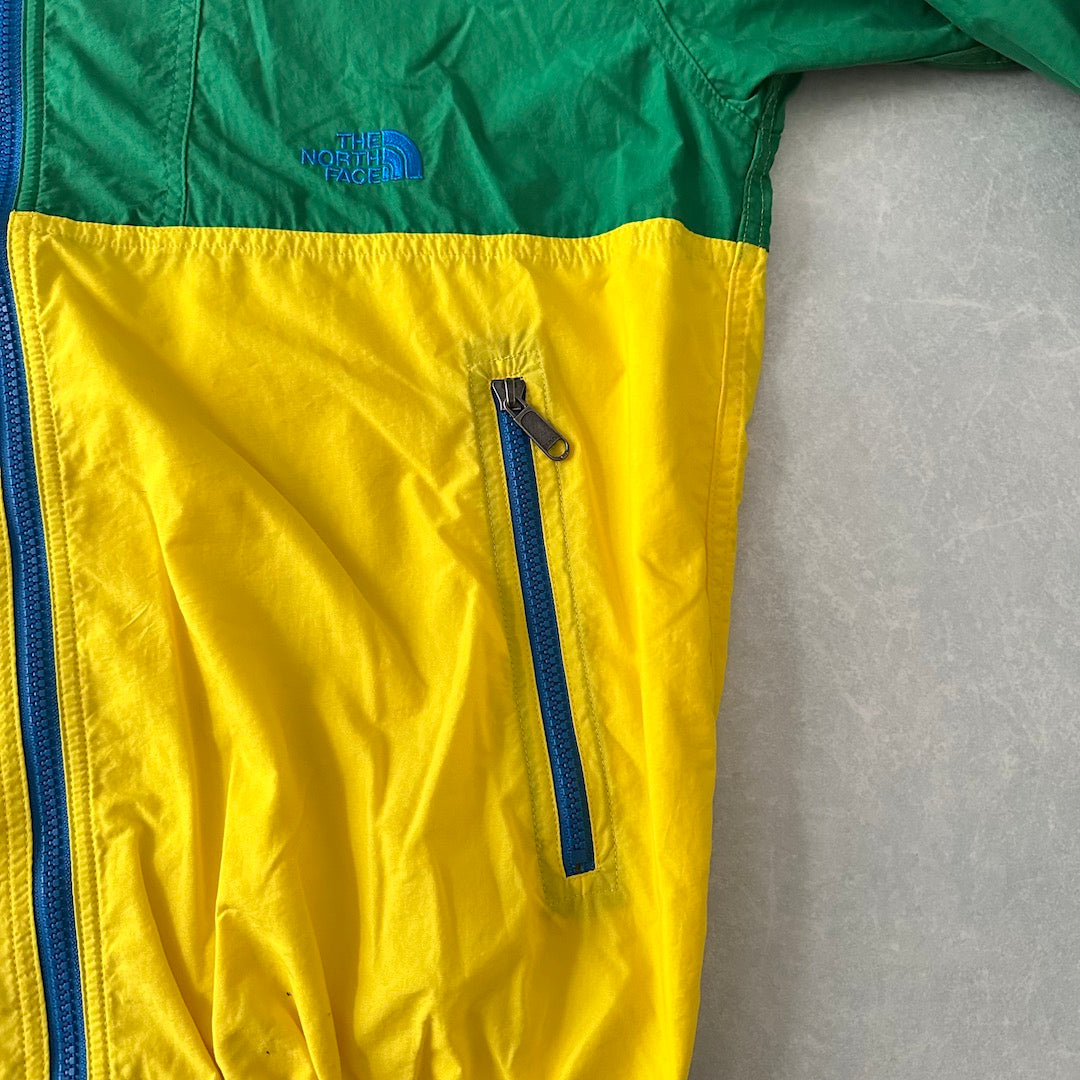 【THE NORTH FACE】ジップアップ ナイロン パーカー グリーン×イエロー L 古着 メンズ 古着男子 ブランド古着 アウトドア古着 緑 黄色 マウンテンパーカー 軽アウター マルチカラー