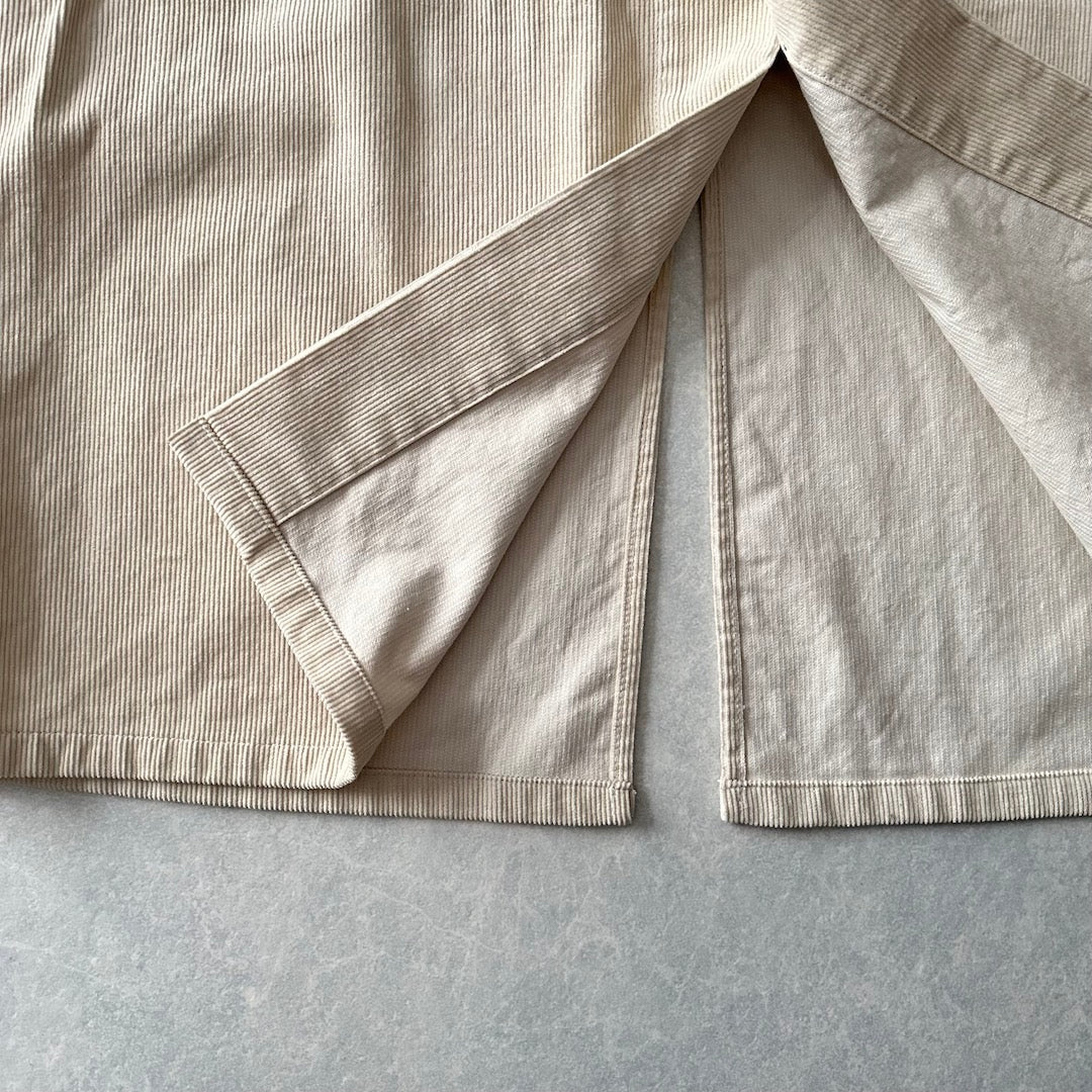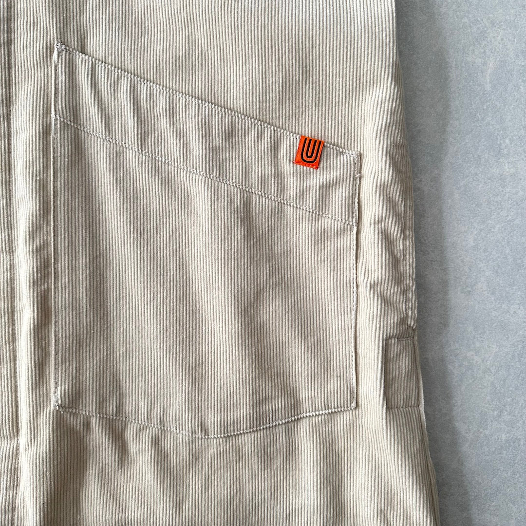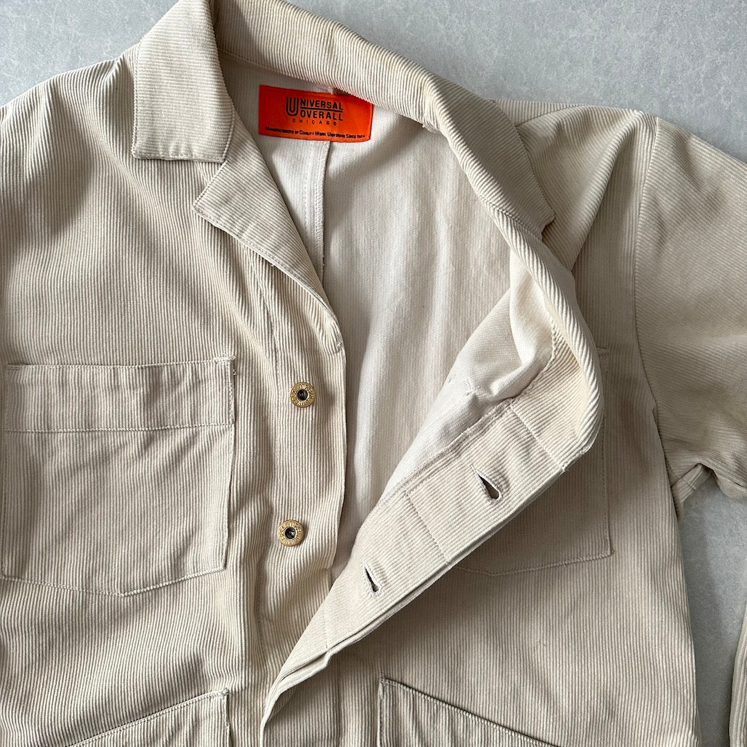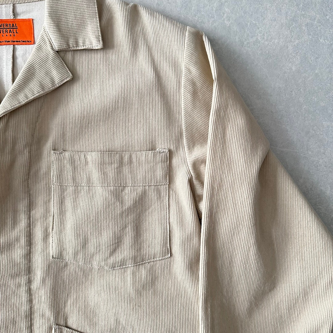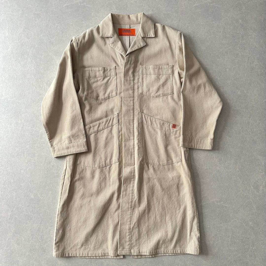 【UNIVERSAL OVERALL】コーデュロイ ロング丈 コート カバーオール ベージュ F 古着 メンズ 古着男子 ブランド古着 アメカジ古着 ワーク クラシック