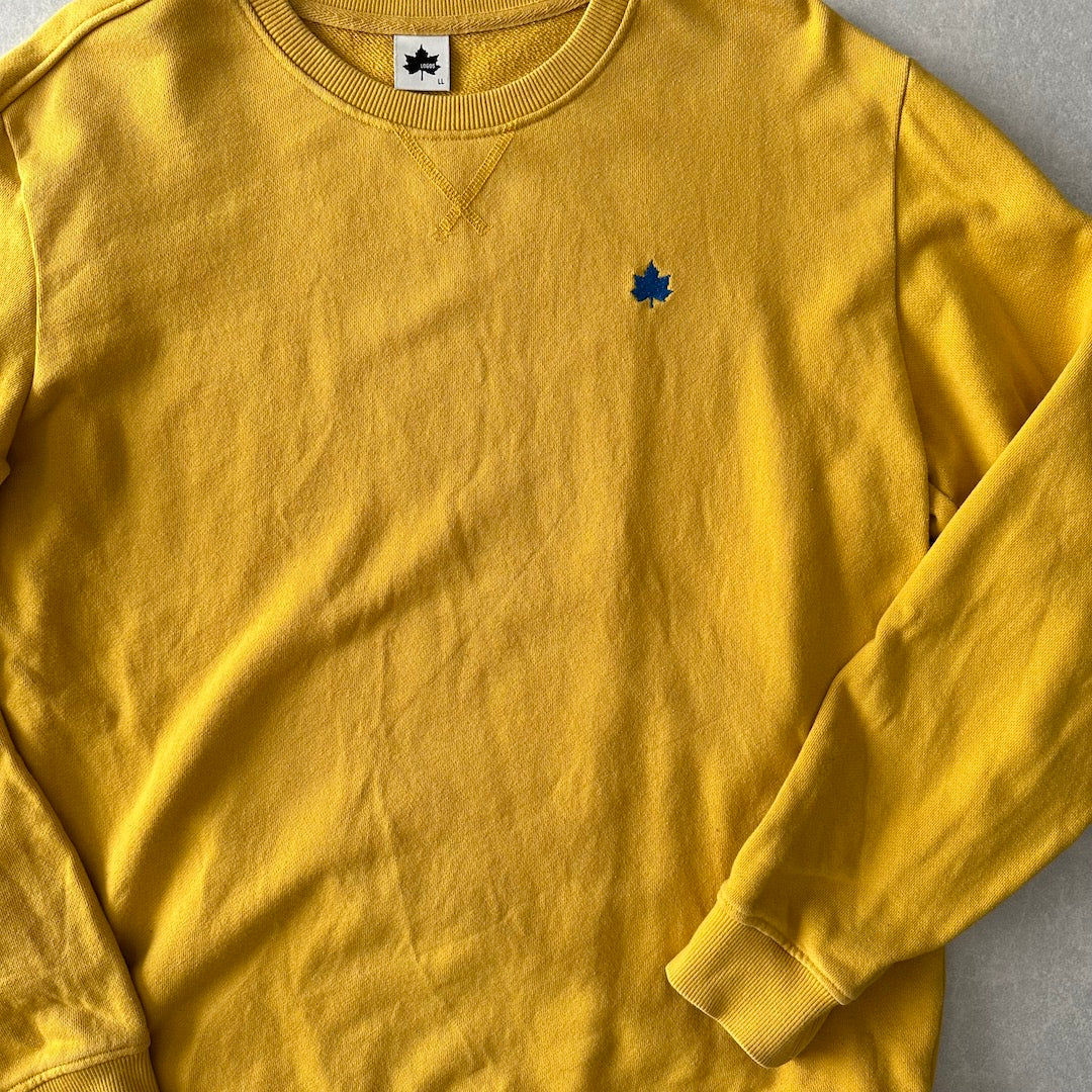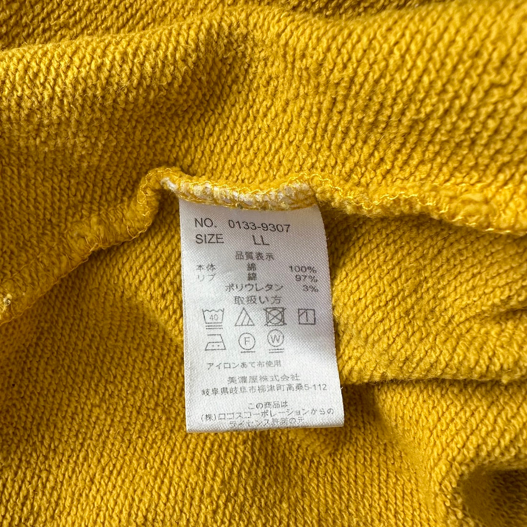 【LOGOS】ワンポイント 刺繍 クルーネック アウトドア スウェット イエロー LL 古着 メンズ 黄色 マスタード