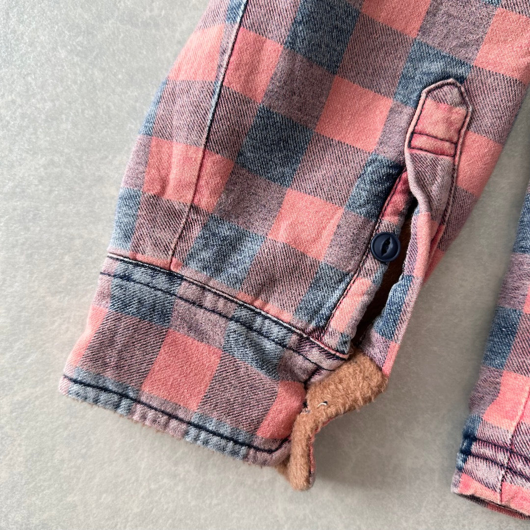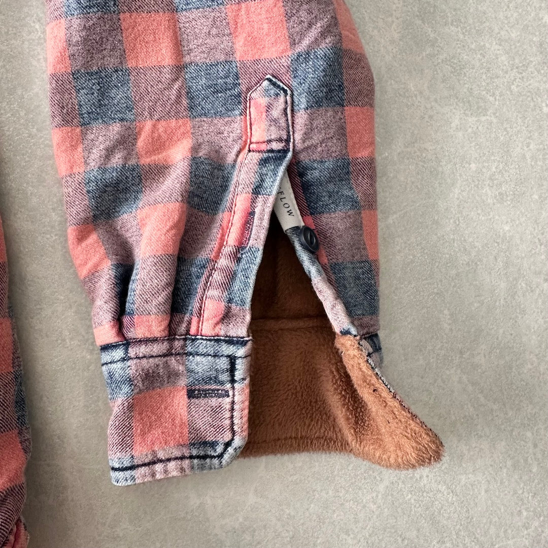 【BAYFLOW】ボア チェック柄 シャツ チェック柄 L 古着 メンズ 古着男子 ブランド古着 サーフ古着 サーフシャツ 海シャツ オレンジ レッド 赤 ヴィンテージ風加工