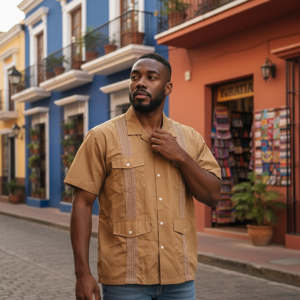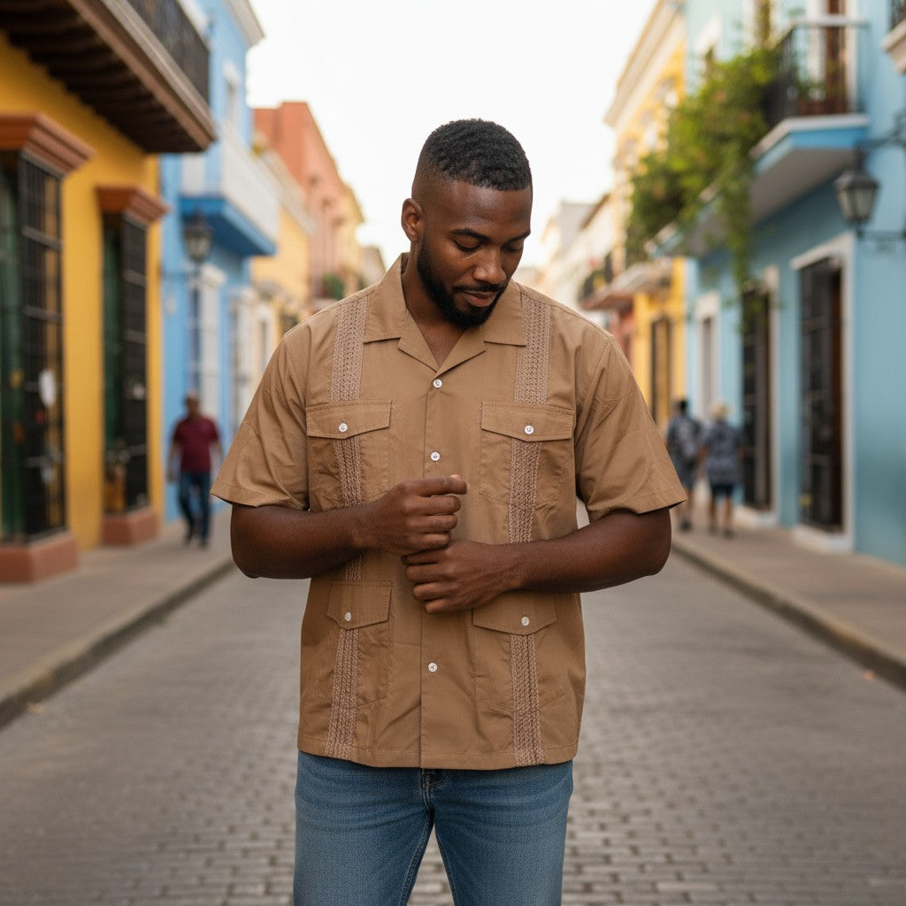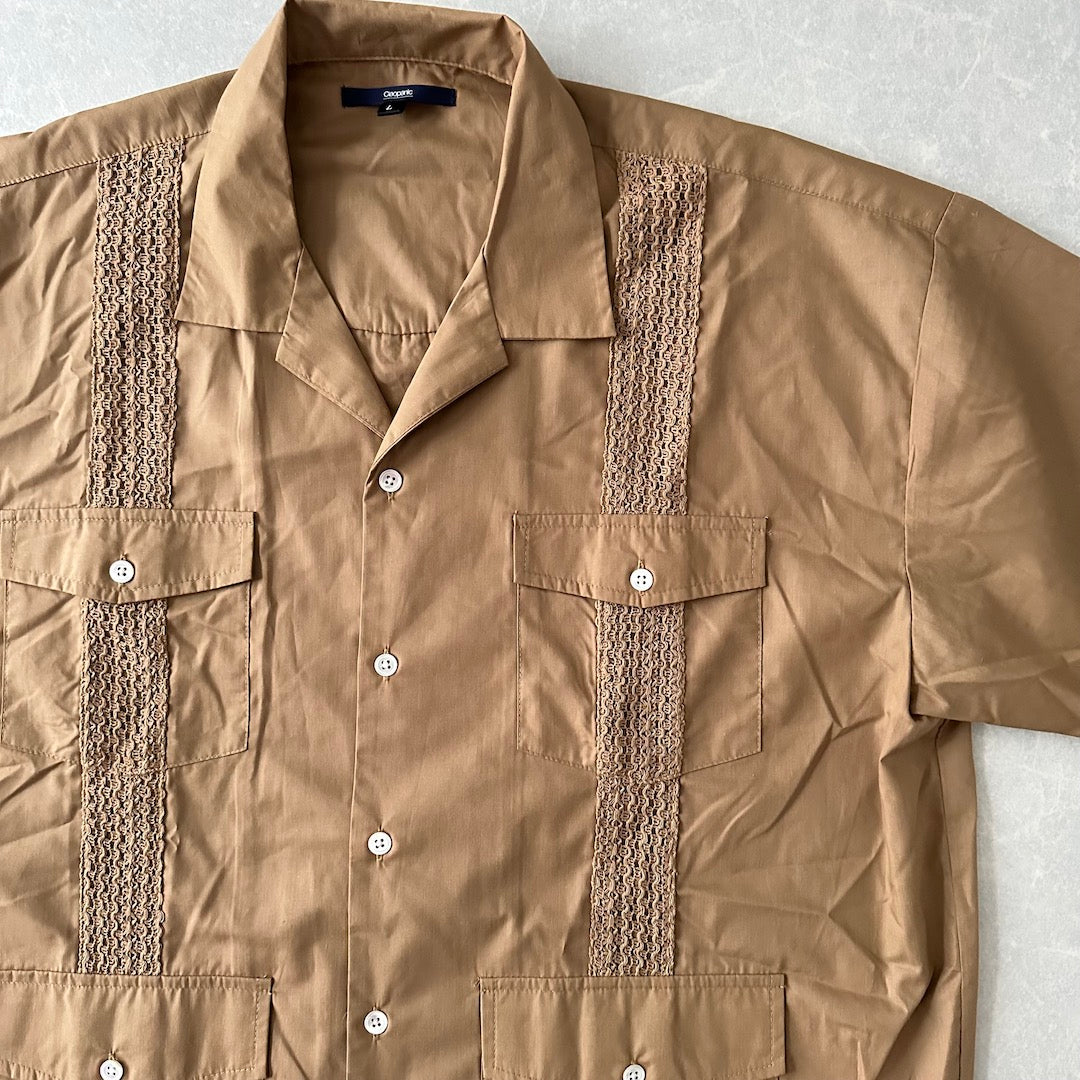 【CIAOPANIC】開襟 半袖 キューバシャツ ベージュ L 古着 メンズ 古着男子 ブランド古着 リゾート 海 ビーチ 刺繍