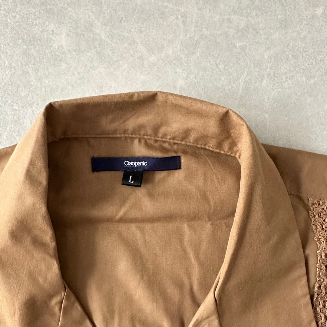 【CIAOPANIC】開襟半袖キューバシャツ ベージュ L 古着 メンズ