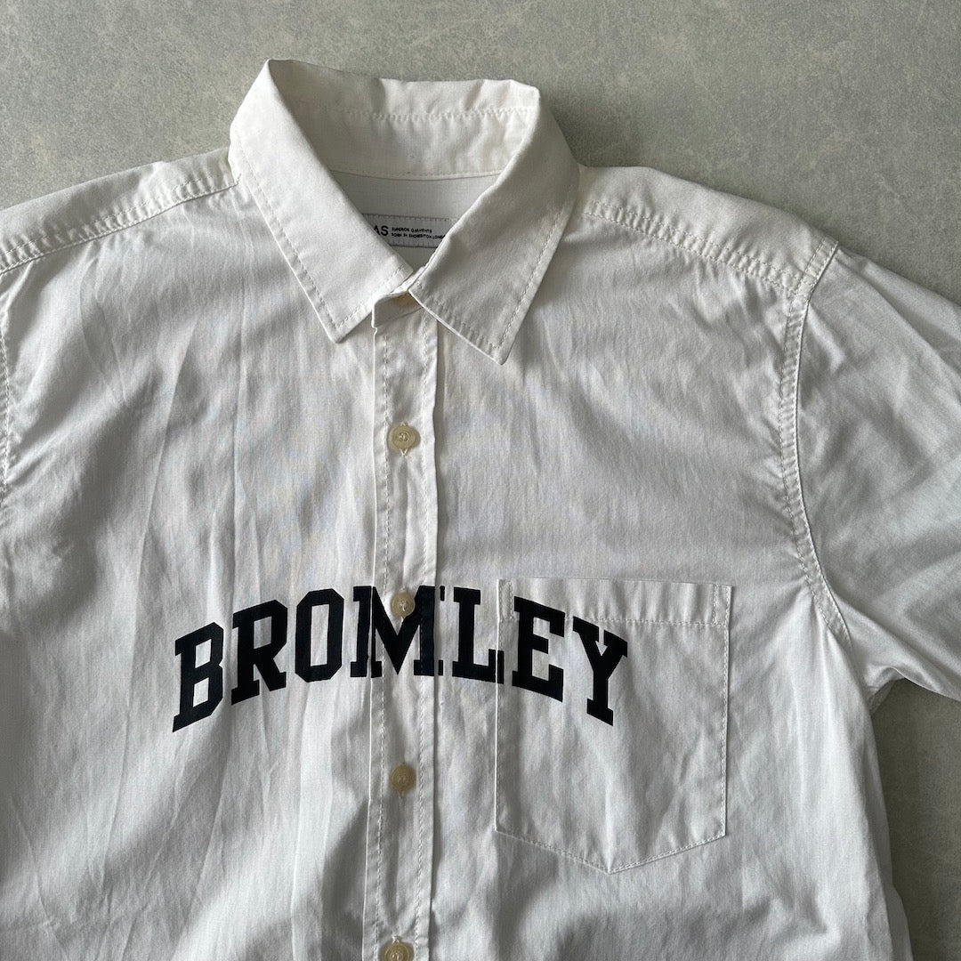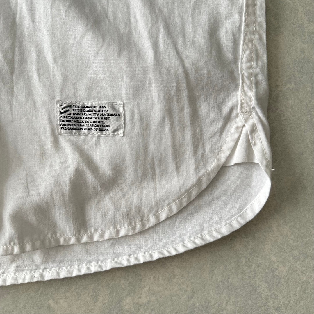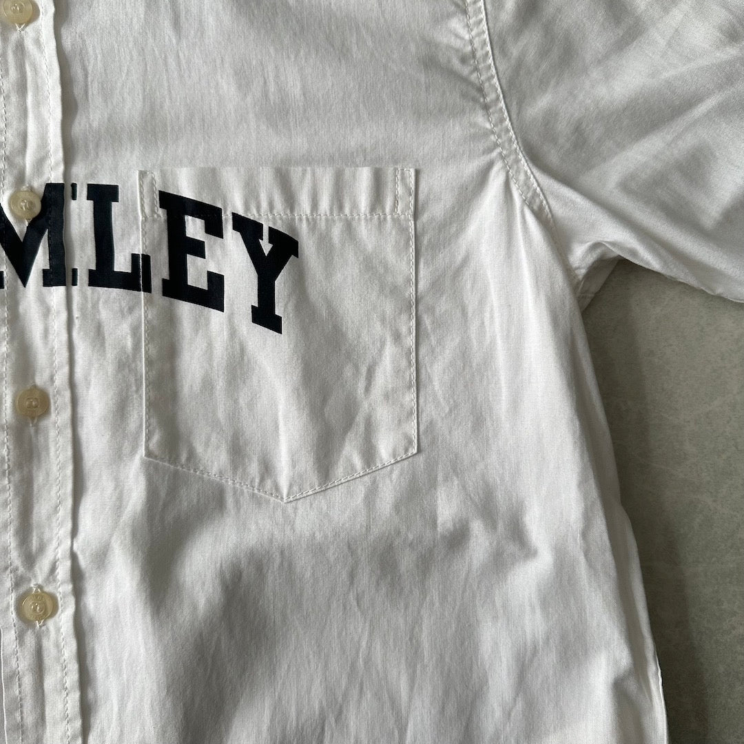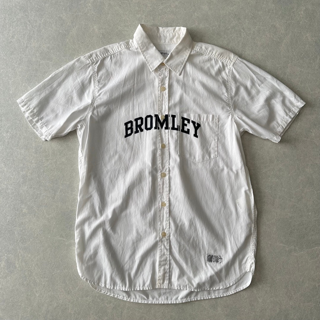 【SILAS】プリント 半袖 シャツ ホワイト M 古着 メンズ 古着男子 ブランド古着 ストリート古着 BROMLEY ポケット 胸プリント 白シャツ