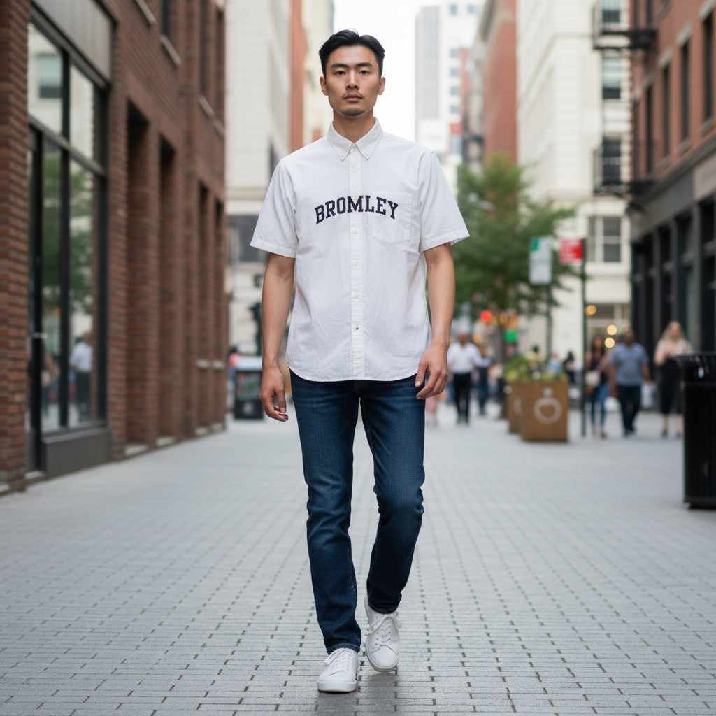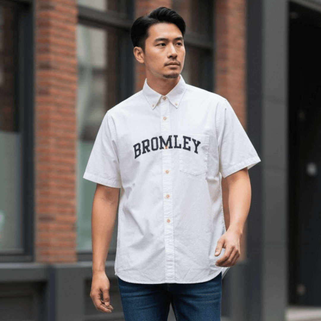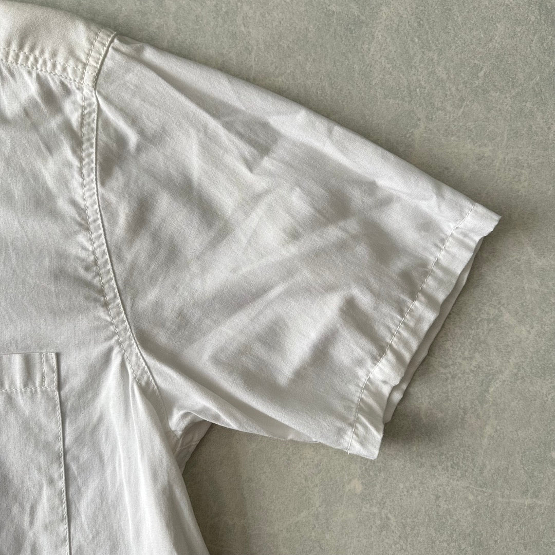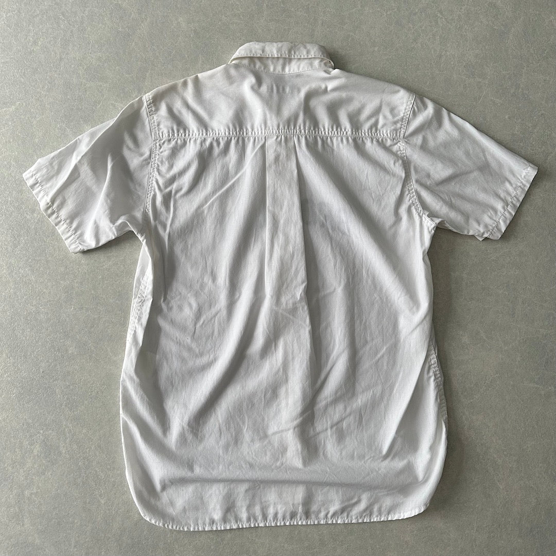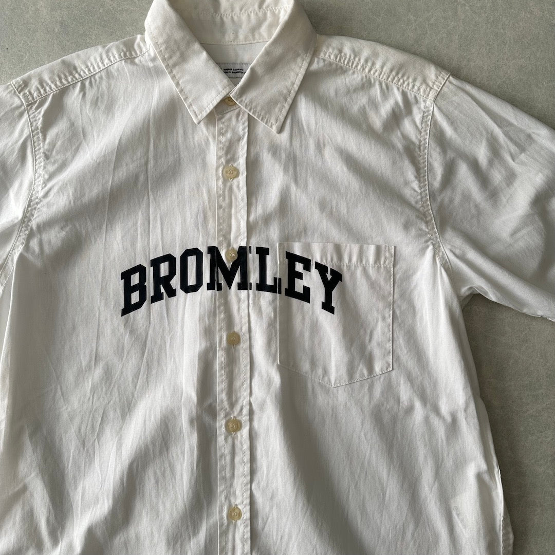 【SILAS】プリント 半袖 シャツ ホワイト M 古着 メンズ 古着男子 ブランド古着 ストリート古着 BROMLEY ポケット 胸プリント 白シャツ