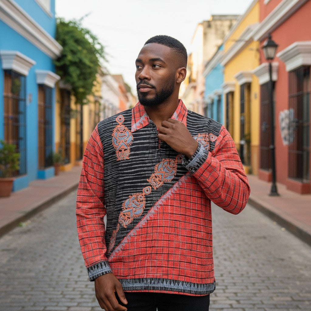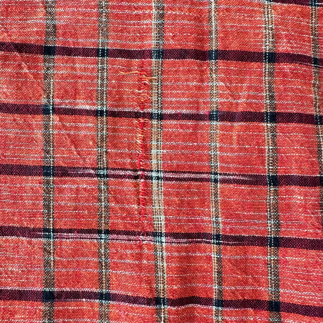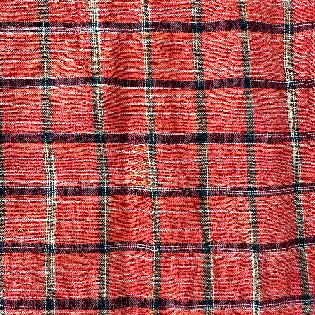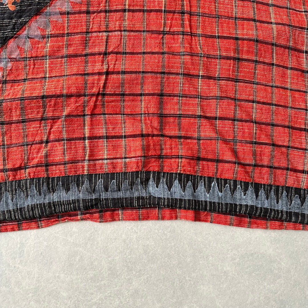 ネイティブ柄 シャツ 総柄 M 古着 メンズ 古着男子 チェック インド 幾何学柄 オレンジ ブラック 黒