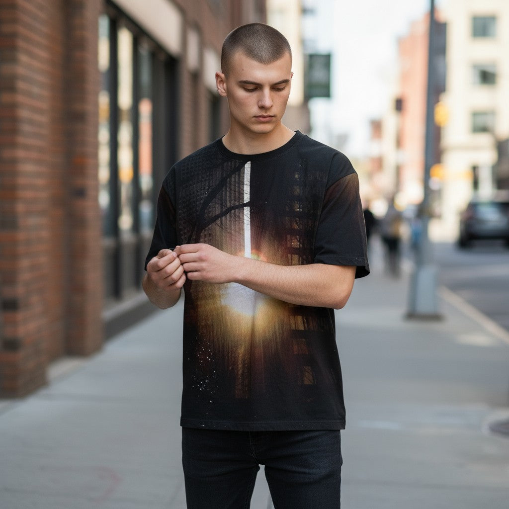 フォト プリント 半袖 Tシャツ 総柄 M 古着 メンズ 古着男子 ブランド古着 ブラック 黒