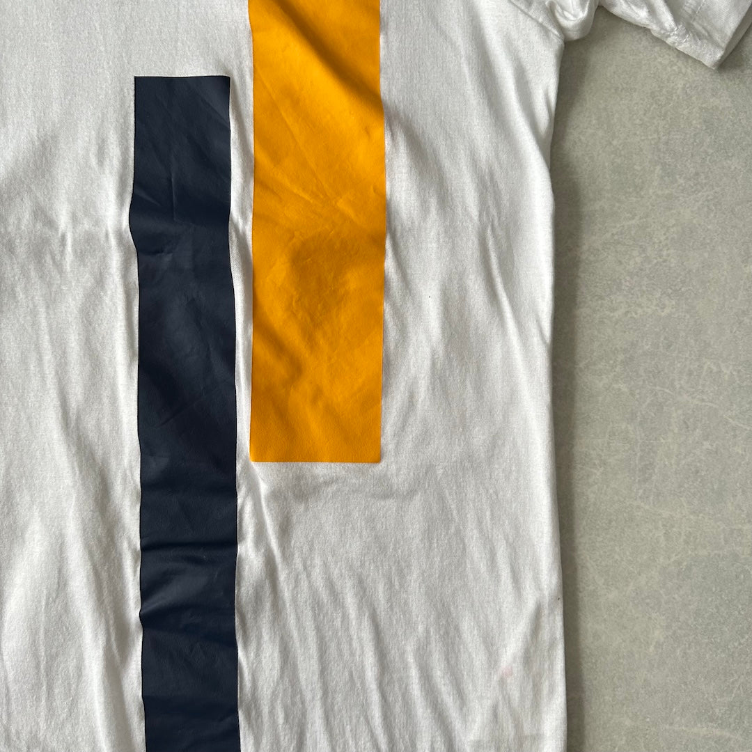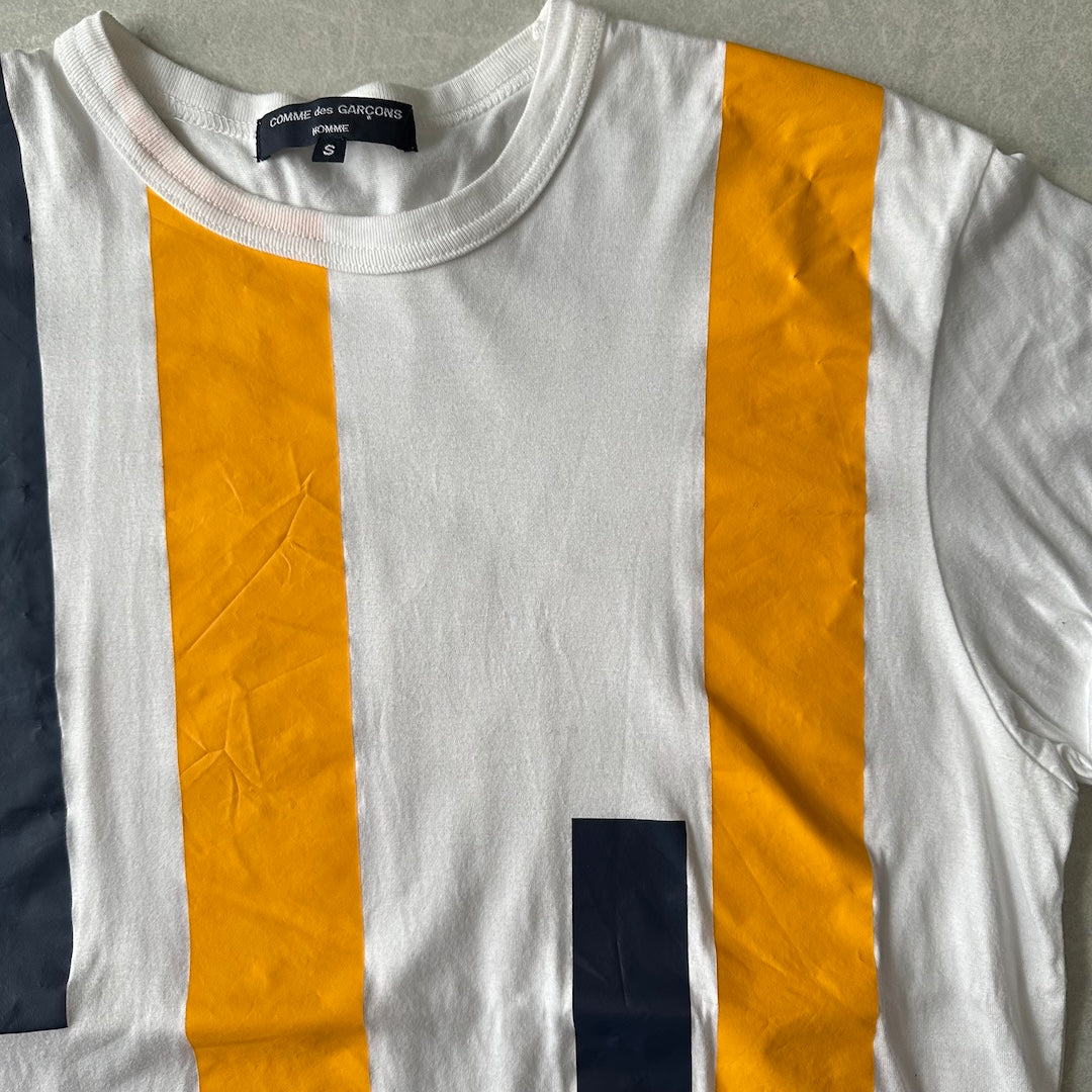 【COMME des GARCONS HOMME】マルチ ストライプ柄 半袖 Tシャツ ストライプ S 古着 メンズ 古着男子 ブランド古着 ホワイト ブルー イエロー 白 青 黄色 クルーネック コットン モード