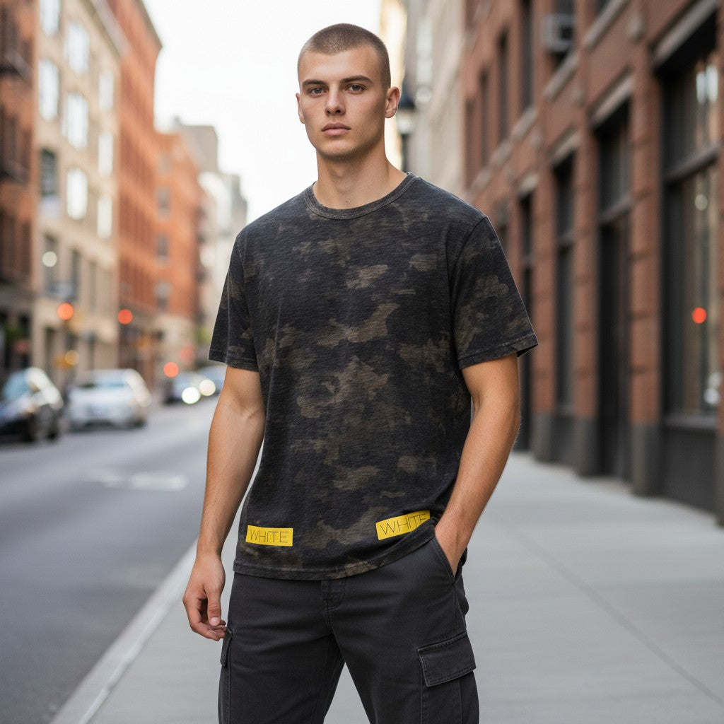 迷彩柄 カモフラージュ バック プリント 半袖 Tシャツ カモフラ柄 XXL 古着 メンズ 古着男子 ミリタリー WHITE カーキ ブラウン